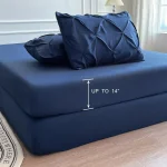 • Deep Pockets: The bed set includes ultra-soft fitted and flat sheets that offer a cozy, breathable sleep surface. The fitted sheet is designed with a 14-inch deep pocket, ensuring it securely fits thicker mattresses without slipping or bunching.